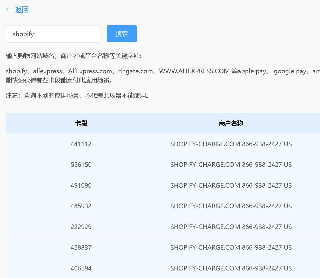 点击后直接输入“shopify”查询就行,有很多卡段可选,记住自己选的卡段,然后点击输入框旁边的“返回”回到开卡选项,就是选卡段的页面了。