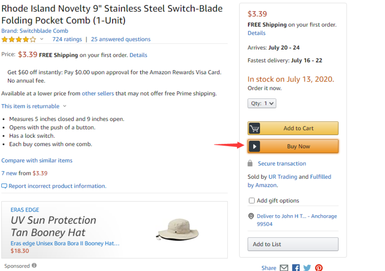 7.添加信用卡后就可以进行购物了,进入一个自己想买的商品页面.选择好数量种类后点击Buy Now