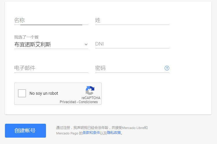 2.点击Crea tu cuenta(创建账号)注册,之后填写账号信息,原本是西班牙语的我翻译成中文了。