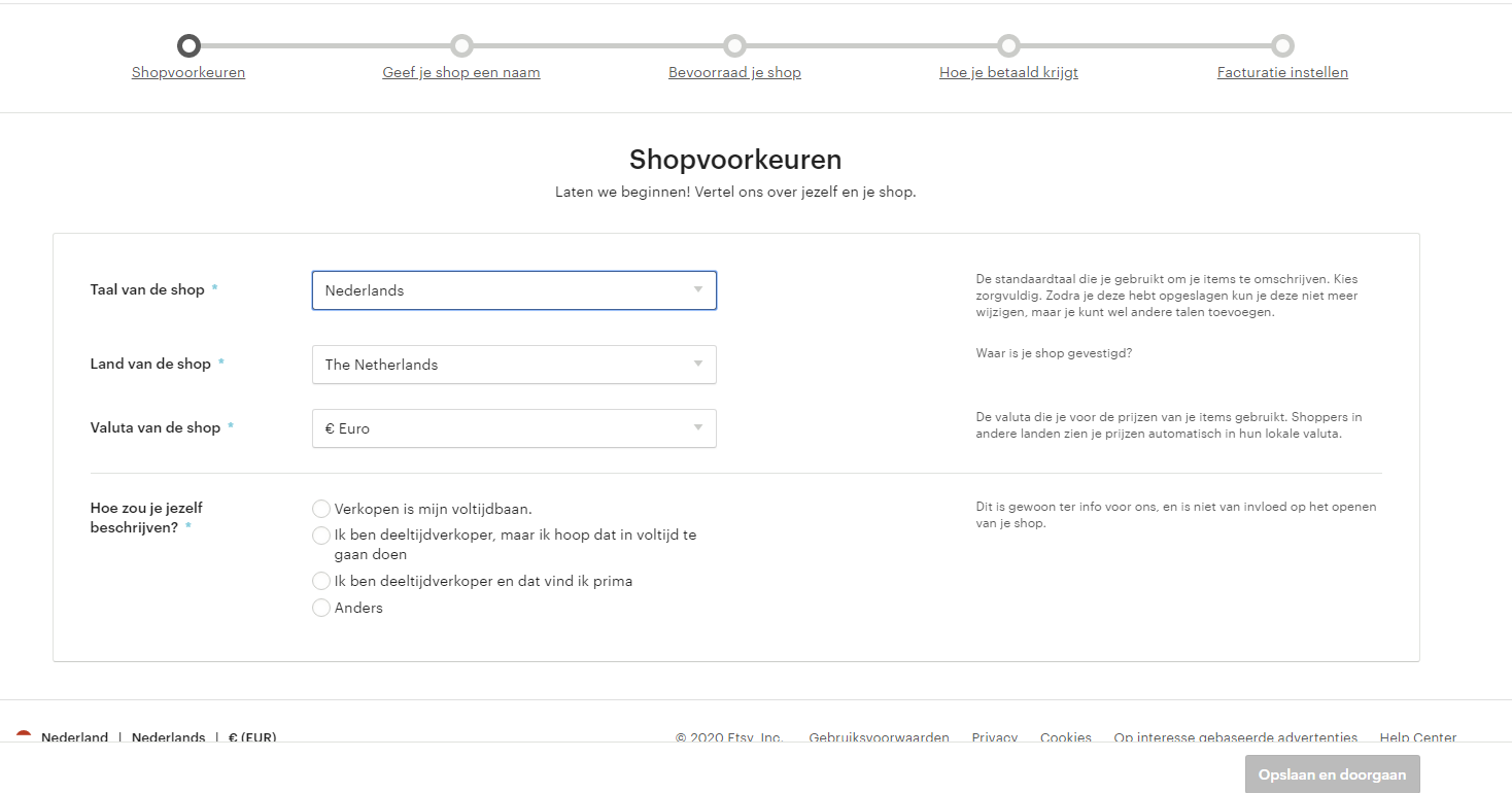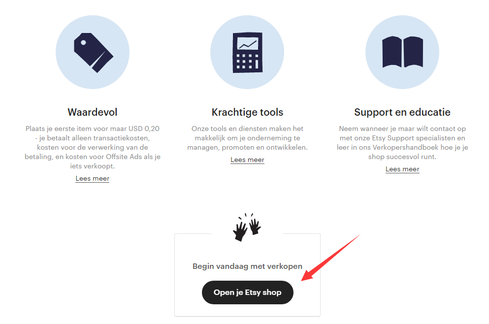 4.注册完成后点击右上角的Verkopen op Etsy(在Etsy开店)