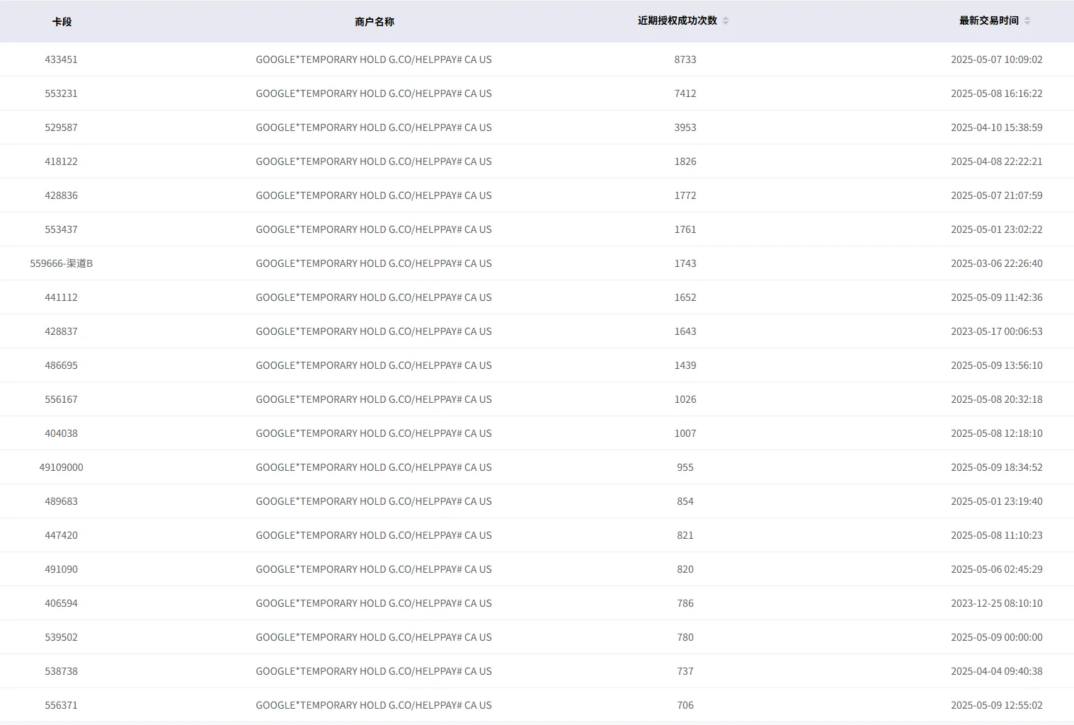 - BIN码优化库:平台内置经过验证的高通过率卡段,例如专为Google Pay验证优化的BIN 433451和553231,这些卡段因发卡行信誉良好,能有效规避支付失败风险。
